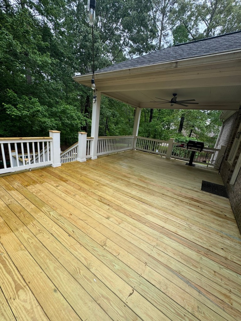 We specialize in custom deck building, exterior wood restoration, sealing, staining, and pressure washing/soft washing services!